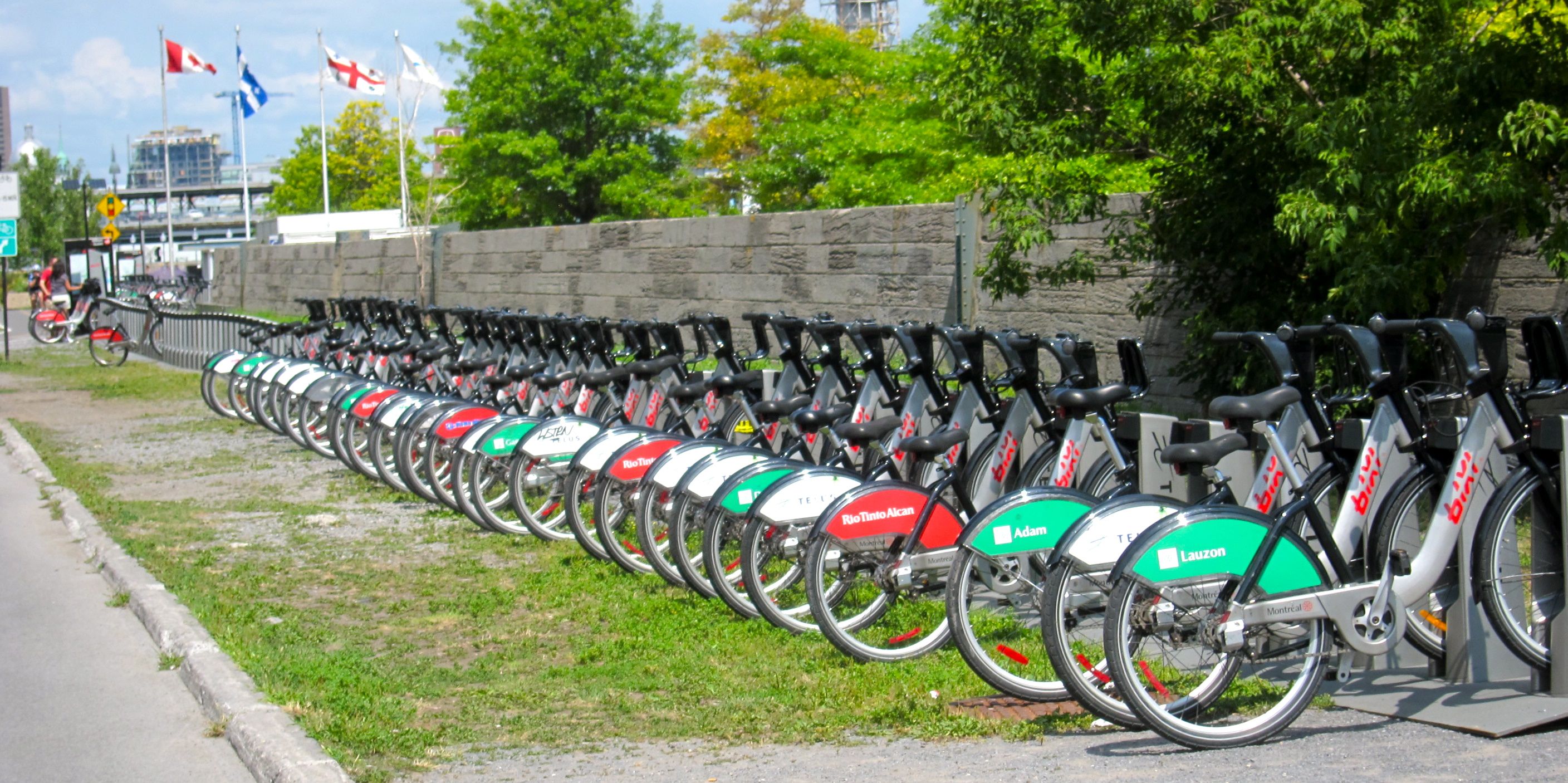 After pulling some plastic with ripped French-Canadian rock climbers (be still my beating heart!), I checked out another Bixi and rode to meet my relatives for lunch in Vieux Port, the touristy Old Port district. I parked the bike right along the waterfront, at at the longest Bixi bike corral I had seen yet, .