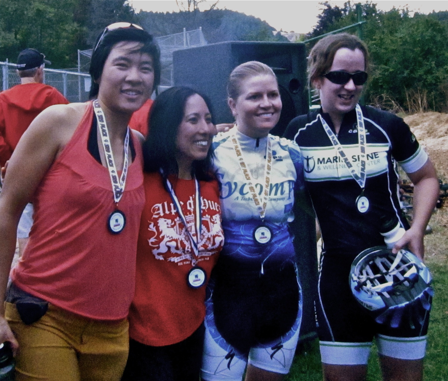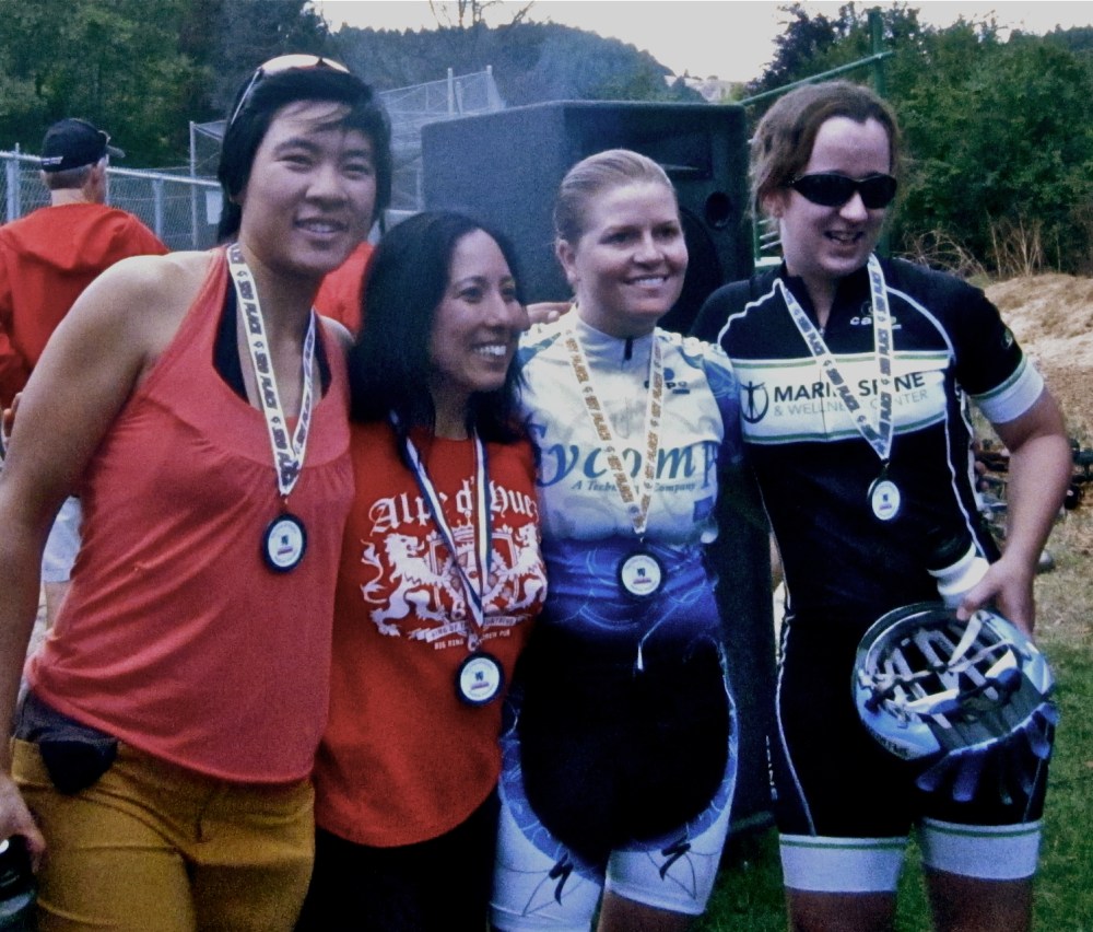 The Team Mustache guys showed up during the women’s race and saw me fly around the course with great confusion. Who the heck is that? I was flying pretty fast, so afterward I got the race officials to switch my category to B. Good thing too — I got third place! Whoa!