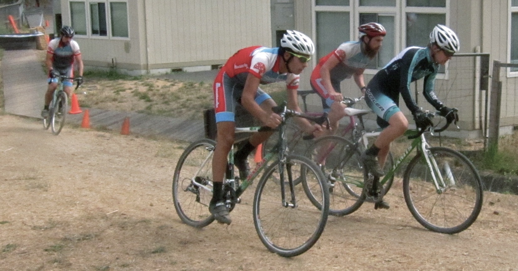 Back in Fairfax, the burger-chips combo was $9 and I only had $5, so I scarfed a Clif Bar and rode a practice lap during a break in the Men’s A race. The course went around the school’s baseball field, then through the campus into a backyard, BMX area. Only in Fairfax do you get a BMX track in the playground.