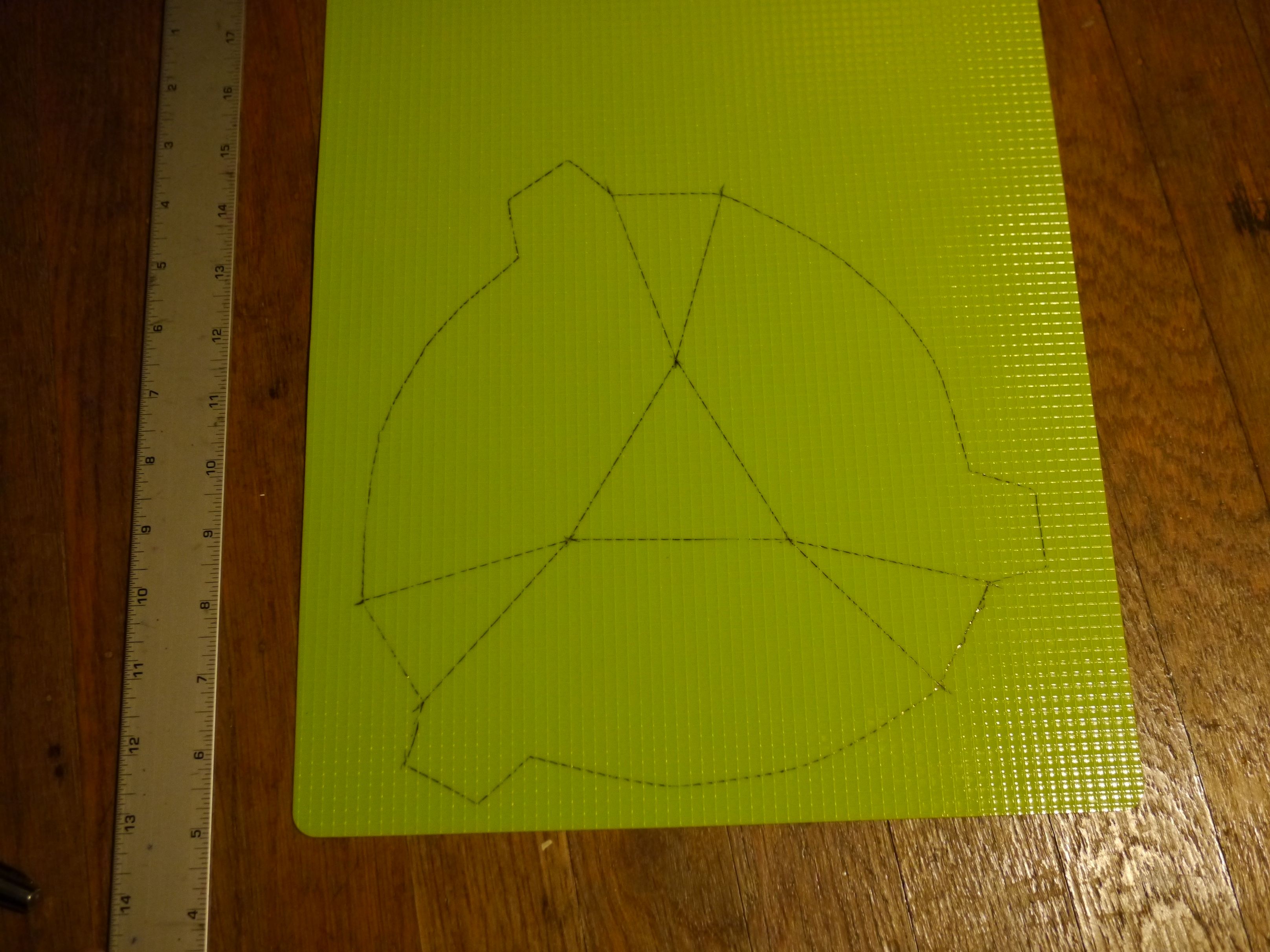 It’s a flexible plastic cutting board, you can find it at grocery stores, or try the dollar store. No the pattern is not completely round, it is somewhat based off of a triangle. Good luck!